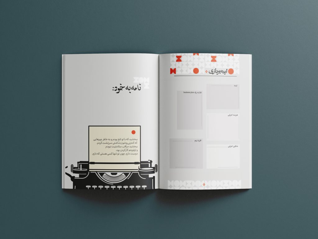 بخش های مختلف دفتر حاوی پیام های آشنا و امید بخش است، تا علاوه بر داشتن زیبایی بصری، برای ادامه کار باعث تشویق مخاطب شود.