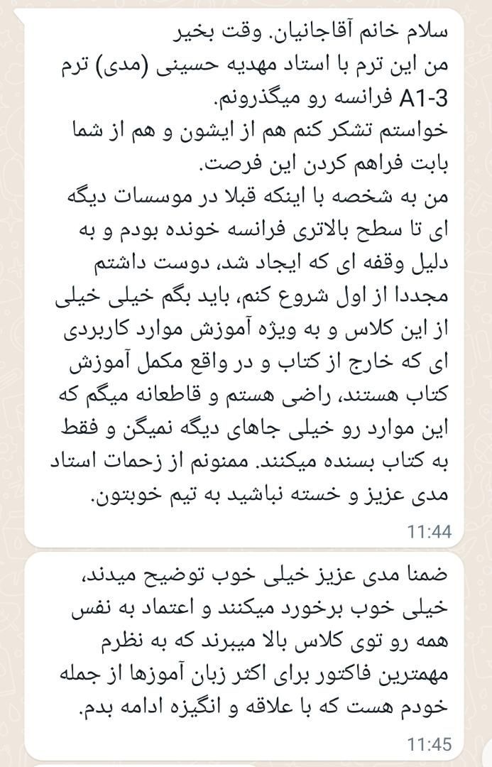 فیدبک شما مربوط به کلاس فرانسه