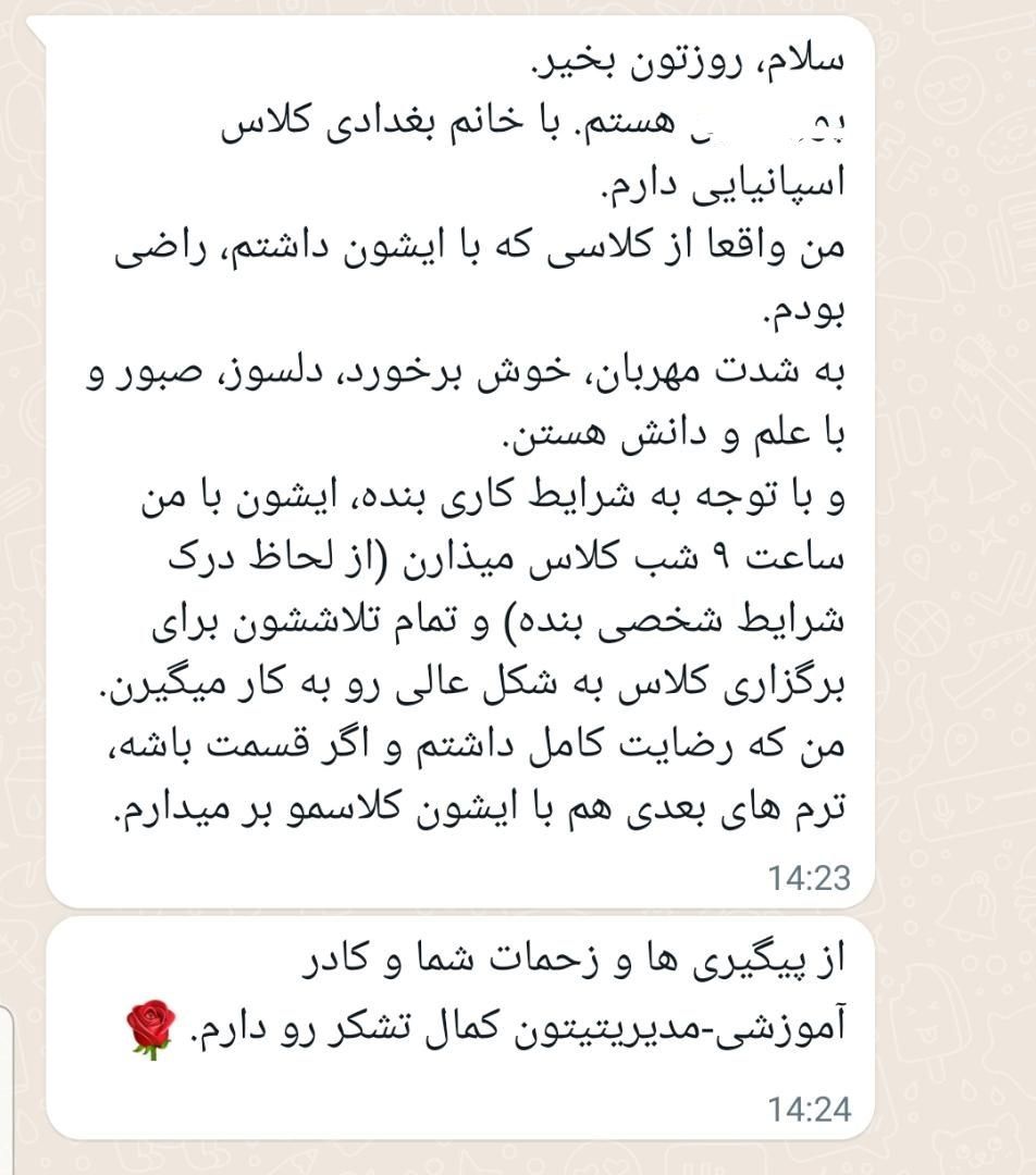 فیدبک شما مربوط به کلاس اسپانیایی