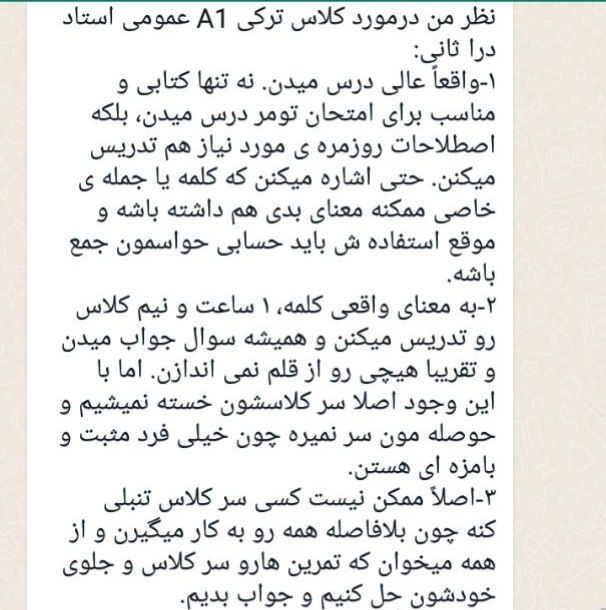 فیدبک شما مربوط به کلاس ترکی