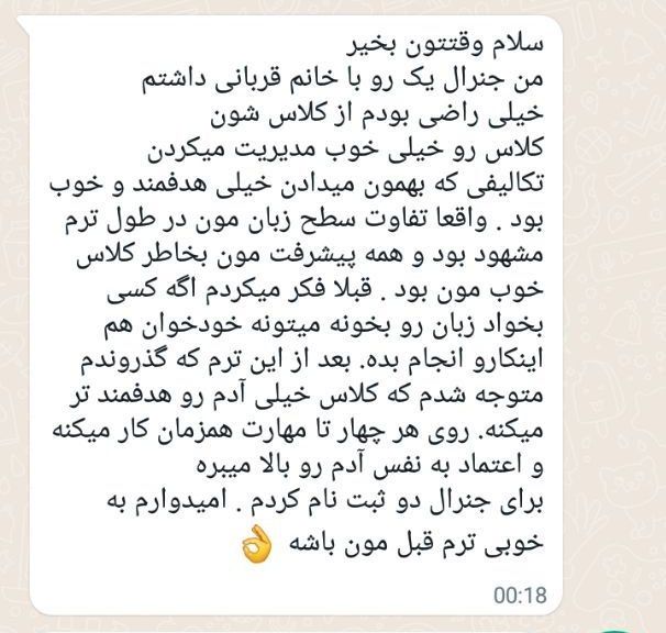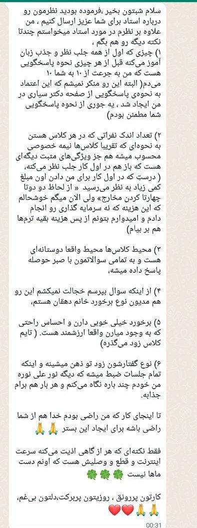 فیدبک شما مربوط به کلاس انگلیسی