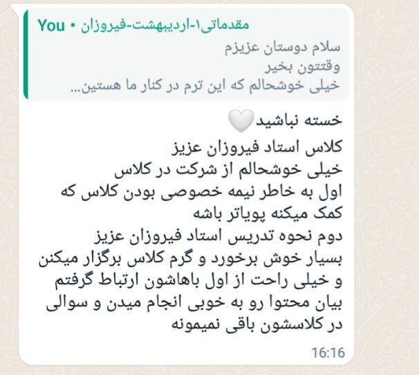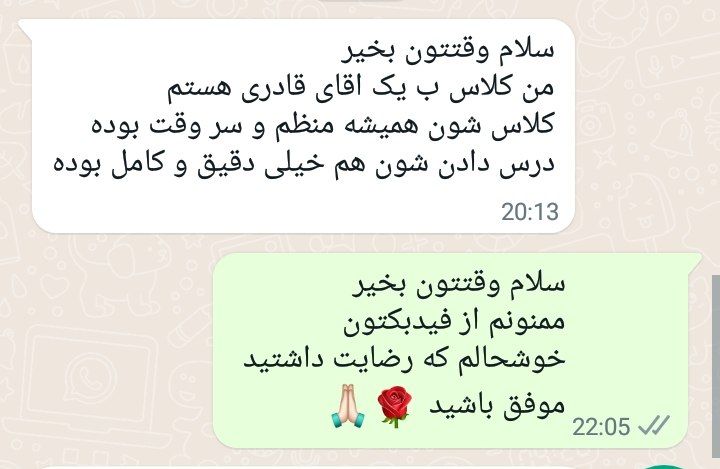 فیدبک شما مربوط به کلاس انگلیسی