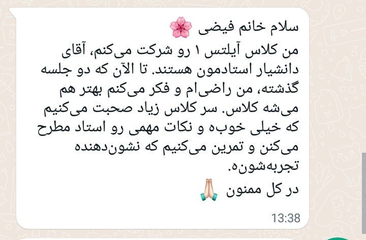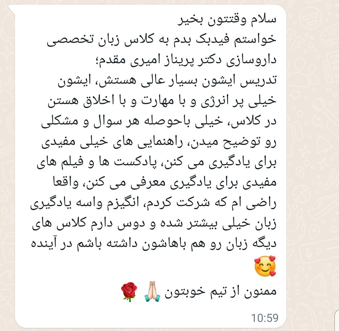 فیدبک شما مربوط به کلاس زبان تخصصی داروسازی دکتر پریناز امیری مقدم