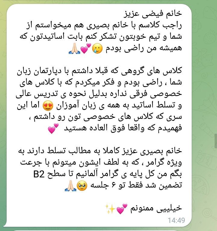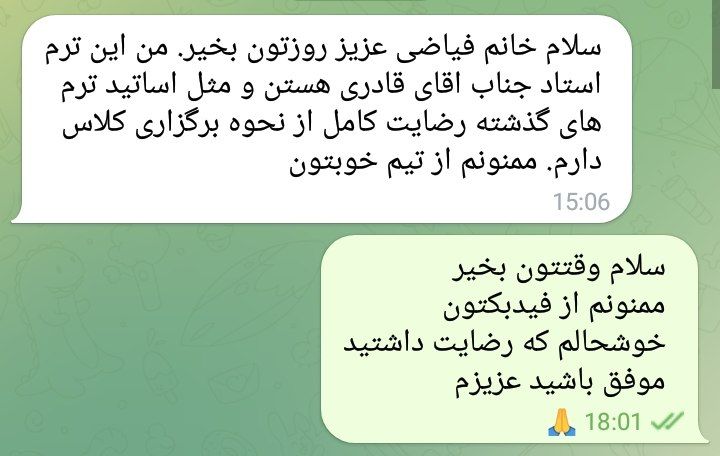 فیدبک شما مربوط به کلاس انگلیسی
