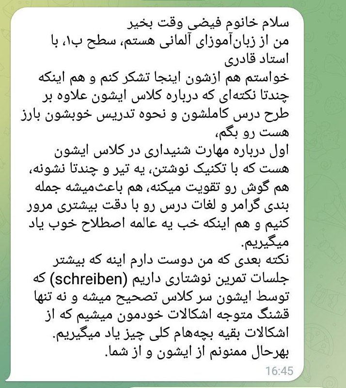 فیدبک شما مربوط به کلاس آلمانی