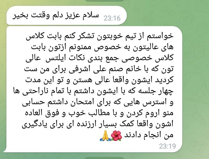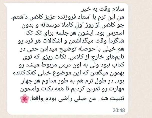 فیدبک شما مربوط به کلاس انگلیسی