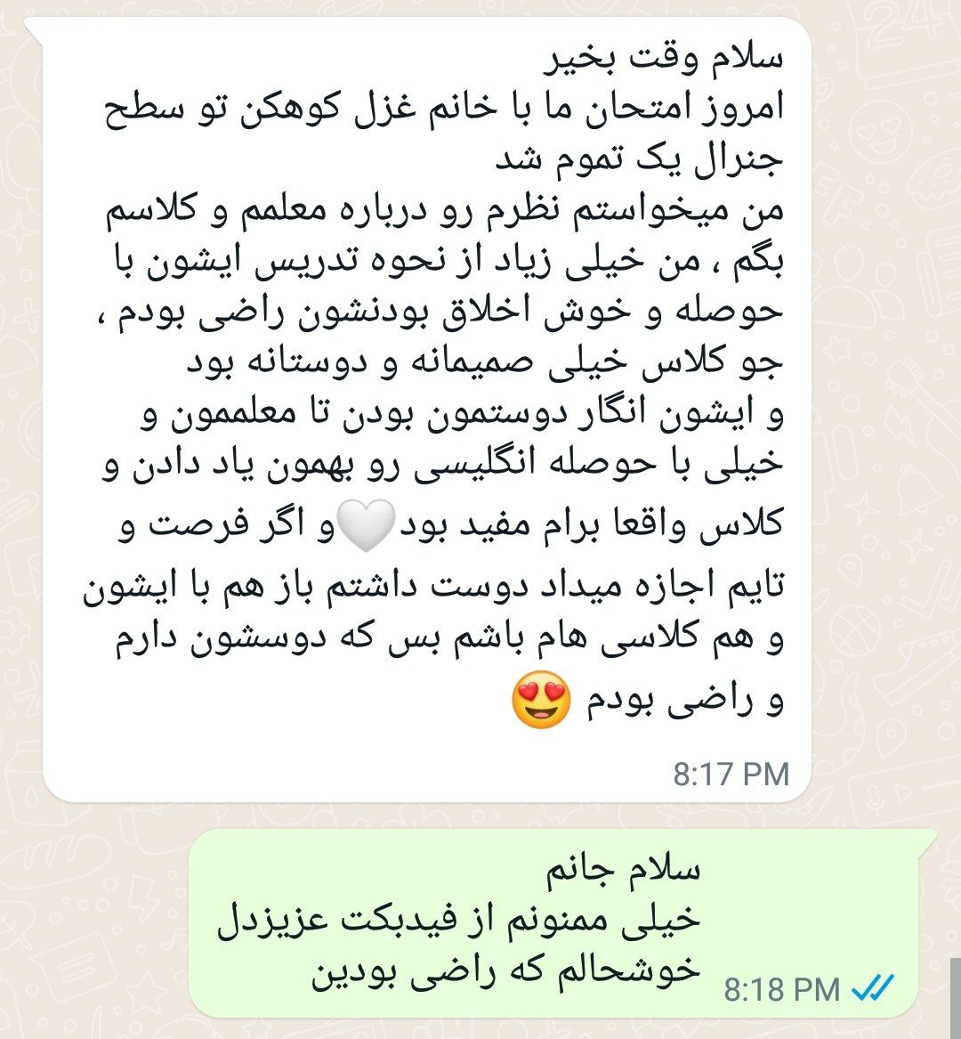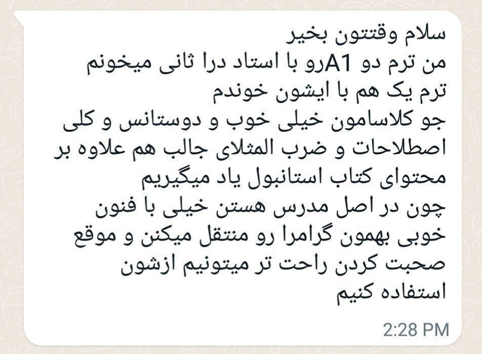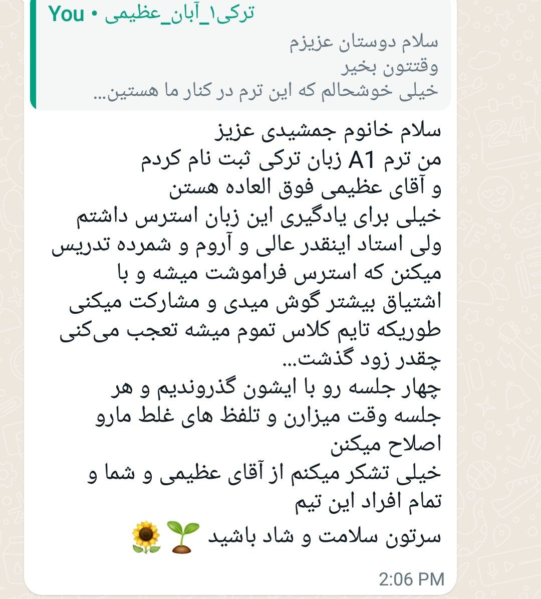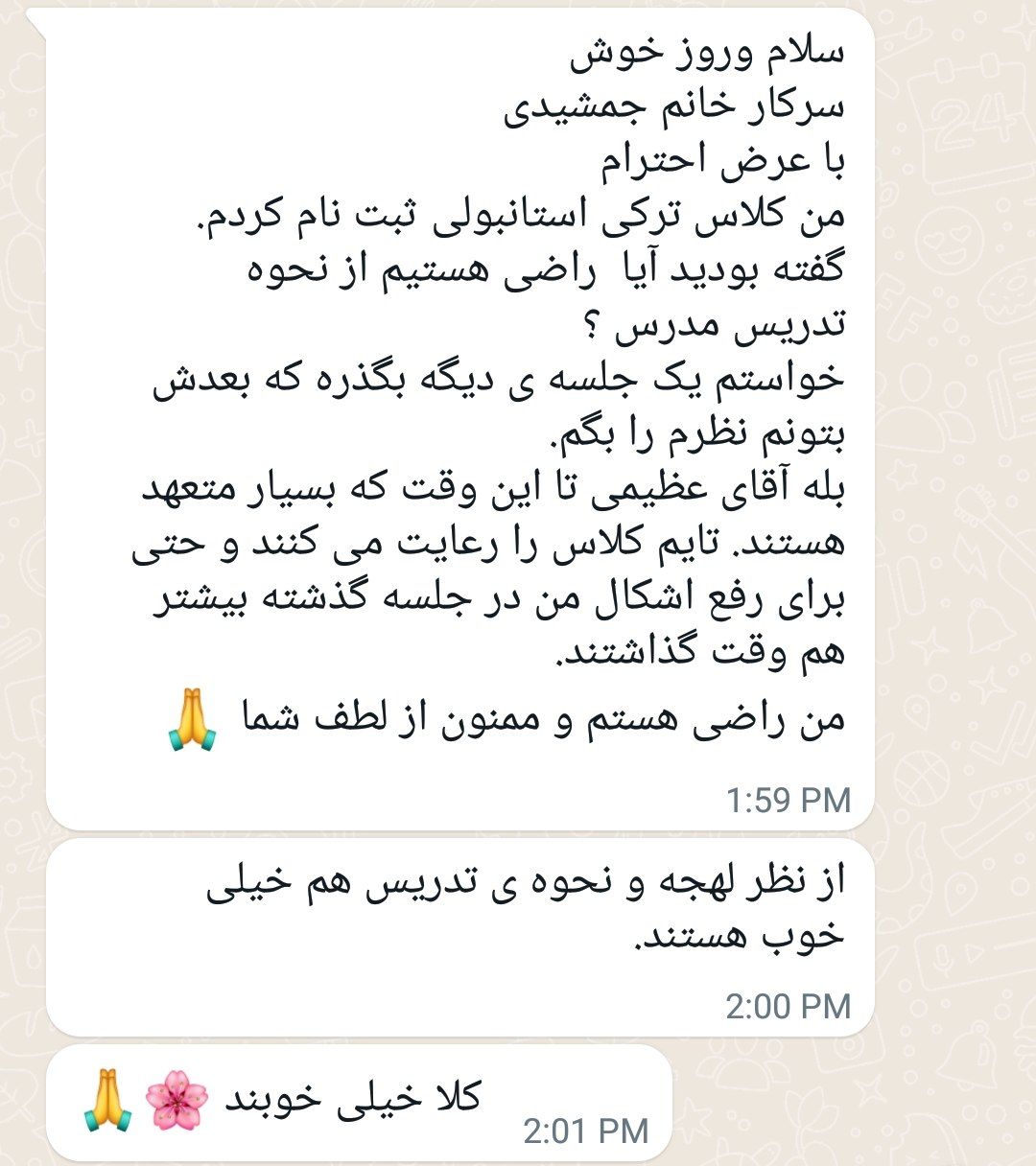 فیدبک شما مربوط به کلاس های زبان ترکی